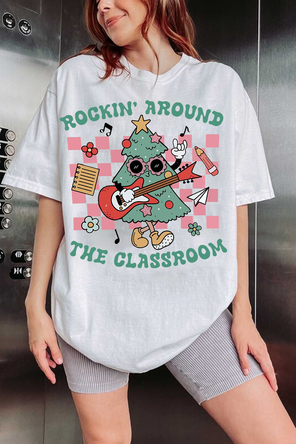 Rockin Around the Classroom Christmas Teacher Tee For Women