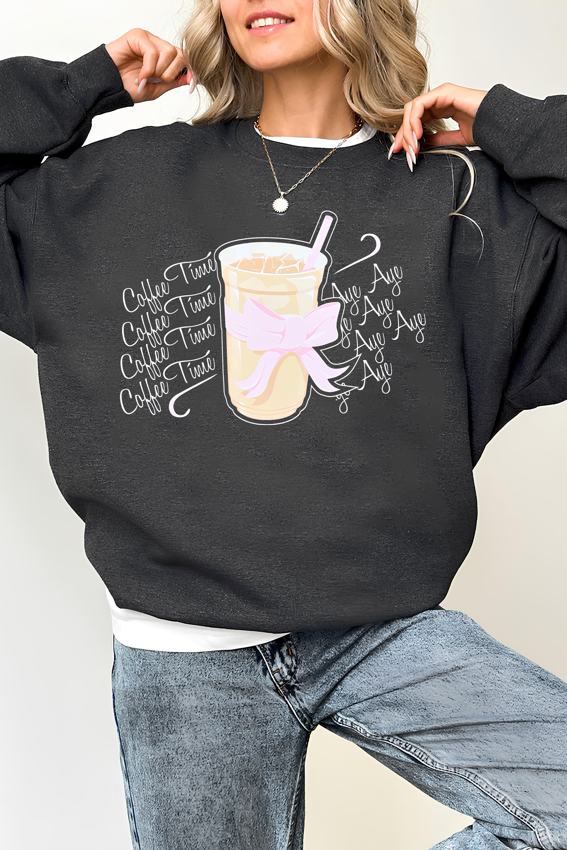 Exquisite Milk Tea Pattern Sweatshirt For Women