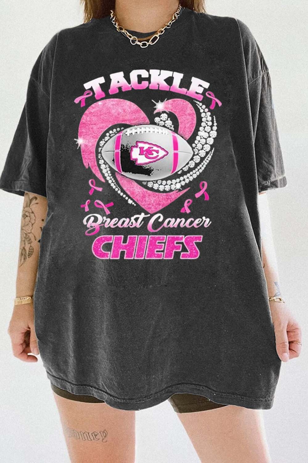 Kansas City Chiefs Team Football Tackle Breast Cancer Tee For Women