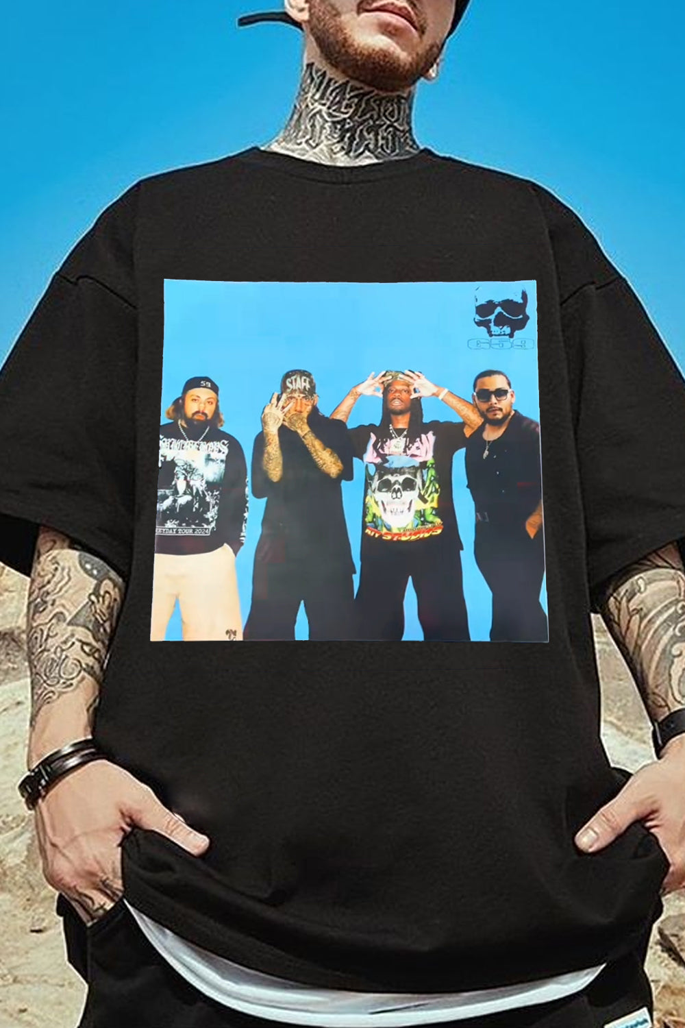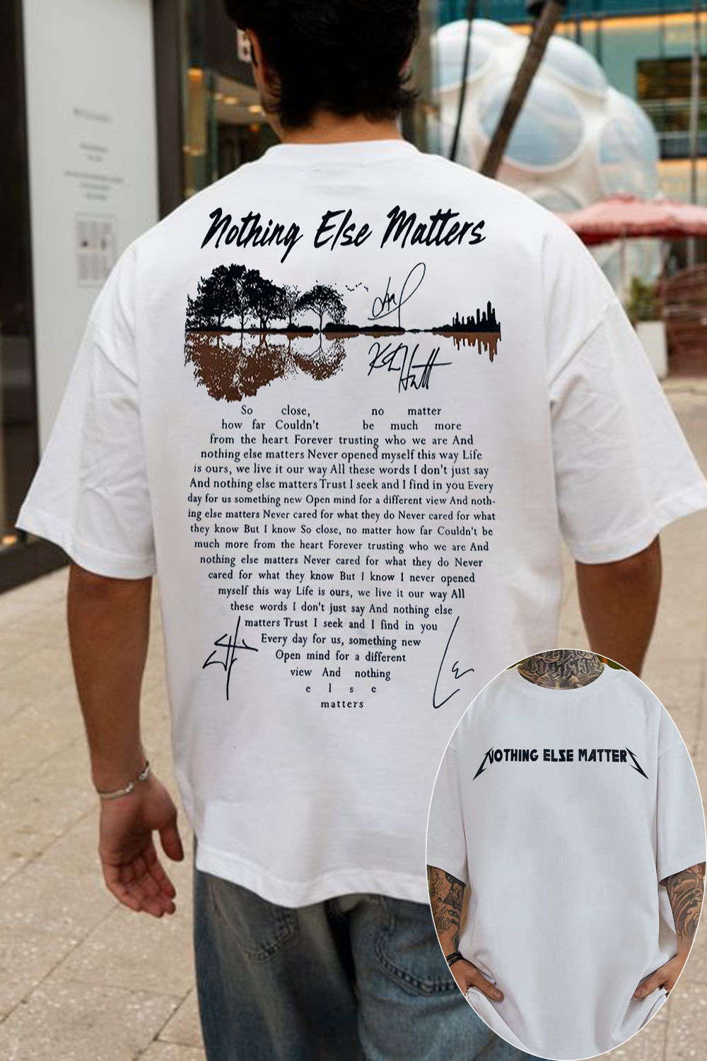 Rock legend on the front, unforgettable lyrics on the back t-shirt